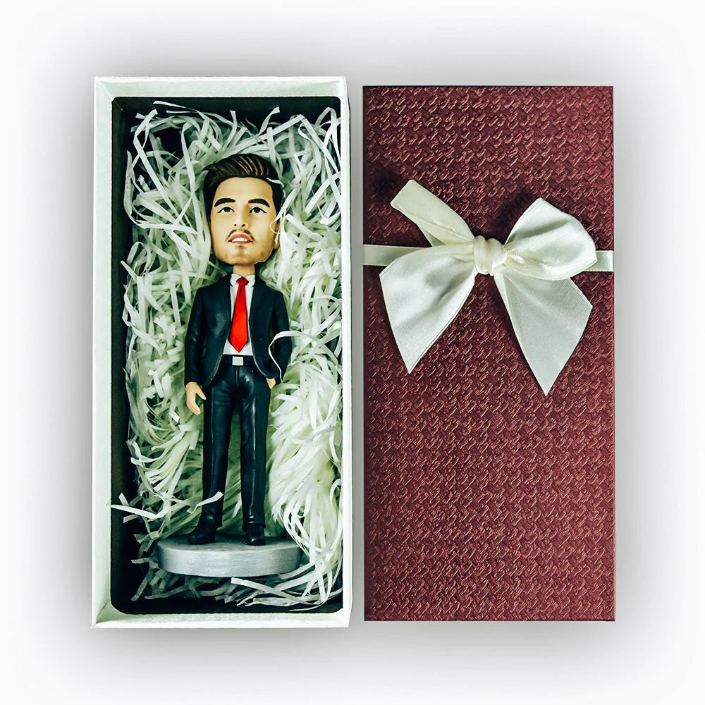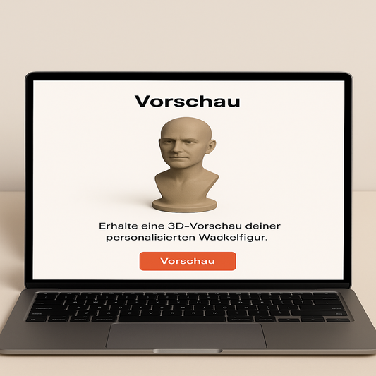 Ja, auf Wunsch erhältst du vor dem Versand deiner individuellen Wackelfigur eine digitale Vorschau. Gegen einen kleinen Aufpreis kannst du die Figur vorab sehen und Änderungswünsche mitteilen. So hast du die Möglichkeit, Details wie Gesichtsausdruck, Farben oder Accessoires anpassen zu lassen, bevor deine Figur in den finalen Produktionsschritt geht. Viele unserer Kunden entscheiden sich jedoch auch bewusst dafür, sich überraschen zu lassen – denn jede handgefertigte Wackelfigur nach Foto ist ein einzigartiges Unikat. Egal, für welche Option du dich entscheidest: Wir sorgen dafür, dass du eine hochwertige und detailgetreue Figur erhältst, die garantiert Freude bereitet.