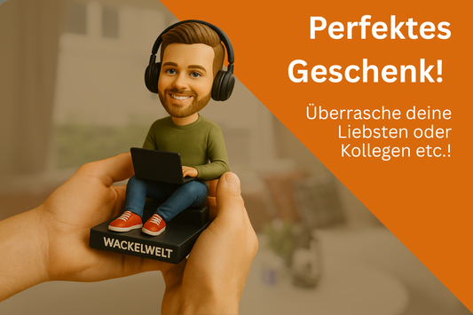 Ja, bei Wackelwelt.de kannst du Geschenkgutscheine in verschiedenen Wertstufen erwerben. Damit verschenkst du die Möglichkeit, eine individuelle Wackelfigur nach Foto selbst zu gestalten – ideal für Geburtstage, Hochzeiten, Jubiläen oder als kreative Überraschung zwischendurch. Die Gutscheine sind online verfügbar und können bequem im Shop bestellt werden. Nach dem Kauf erhältst du den Gutschein per E-Mail oder auf Wunsch auch als hochwertige Druckversion, die sich perfekt zum Verschenken eignet. Der oder die Beschenkte kann den Gutscheinwert direkt im Bestellprozess einlösen und sich die eigene handgefertigte Figur ganz nach Wunsch anfertigen lassen.