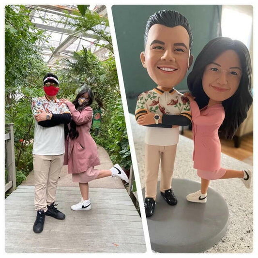 Damit wir deine individuelle Wackelfigur nach Foto so detailgetreu wie möglich gestalten können, ist die Wahl der richtigen Bilder entscheidend. Am besten eignen sich hochauflösende Fotos mit guter Beleuchtung und klar erkennbaren Gesichtszügen. Achte bitte besonders auf folgende Punkte: Gesicht klar erkennbar: – Frontalaufnahmen mit neutralem oder lächelndem Gesichtsausdruck sind ideal. – Vermeide Selfies aus schrägem Winkel, da diese die Proportionen verfälschen können. Hohe Bildqualität: – Schicke uns bitte Fotos in möglichst hoher Auflösung, ohne Filter oder Bildbearbeitung. – Unscharfe, verpixelte oder überbelichtete Fotos erschweren eine detailgetreue Umsetzung. Gute Beleuchtung: – Natürliches Licht oder gleichmäßige Ausleuchtung sorgt dafür, dass Gesichtszüge und Haarfarben korrekt wiedergegeben werden können. – Vermeide starkes Gegenlicht oder Schatten im Gesicht. Mehrere Perspektiven: – Wenn möglich, sende uns zusätzlich Seitenansichten oder weitere Fotos derselben Person. – So können unsere Künstler Proportionen, Frisur und individuelle Merkmale noch genauer nachbilden. Besondere Details: – Accessoires (z. B. Brille, Hut, Bart, Schmuck) oder charakteristische Merkmale sollten auf den Fotos klar sichtbar sein, wenn sie auch auf der Figur umgesetzt werden sollen. 👉 Je besser die Fotos, desto detailreicher und realitätsnäher wird deine handgefertigte Wackelfigur. Mit klaren, hochauflösenden Bildern können wir deine Wünsche optimal umsetzen und ein echtes Unikat erschaffen.